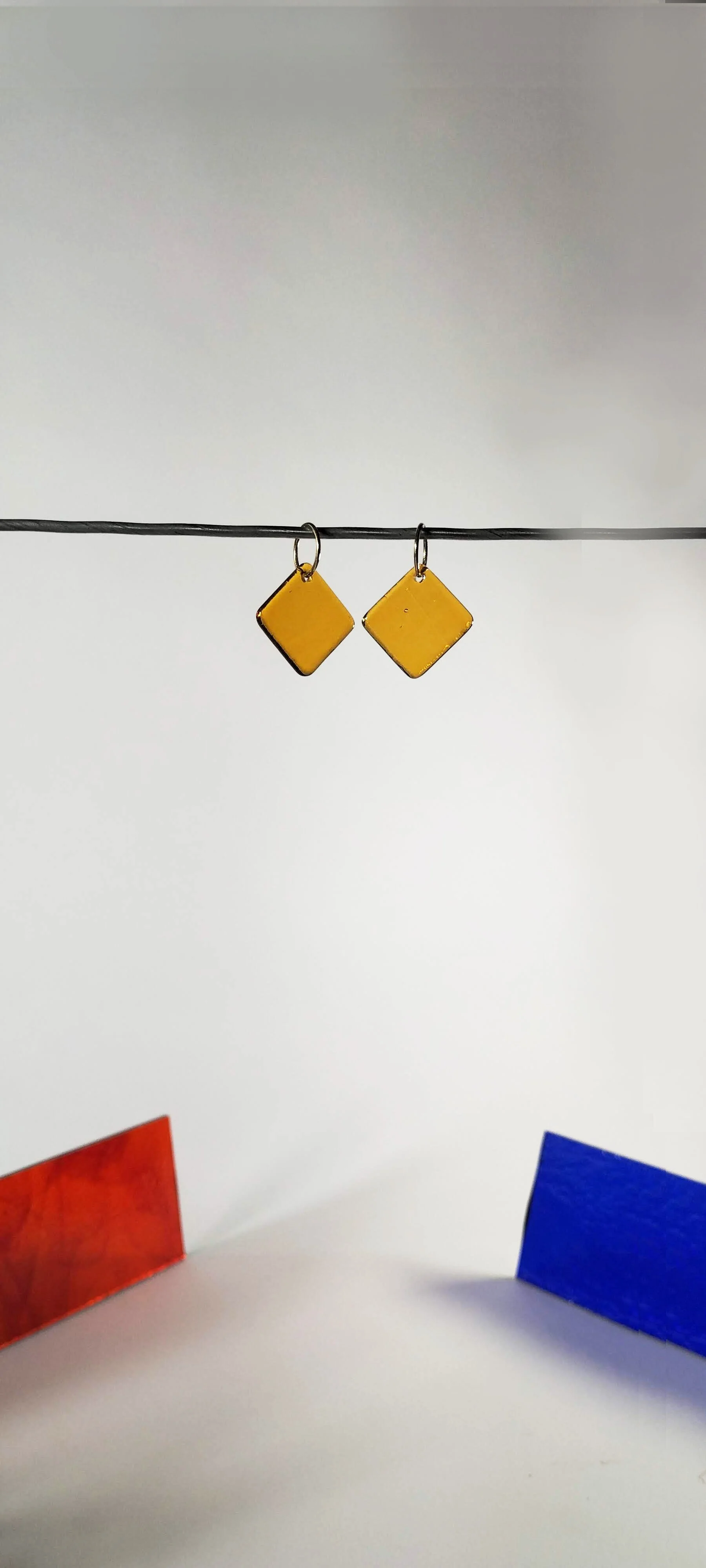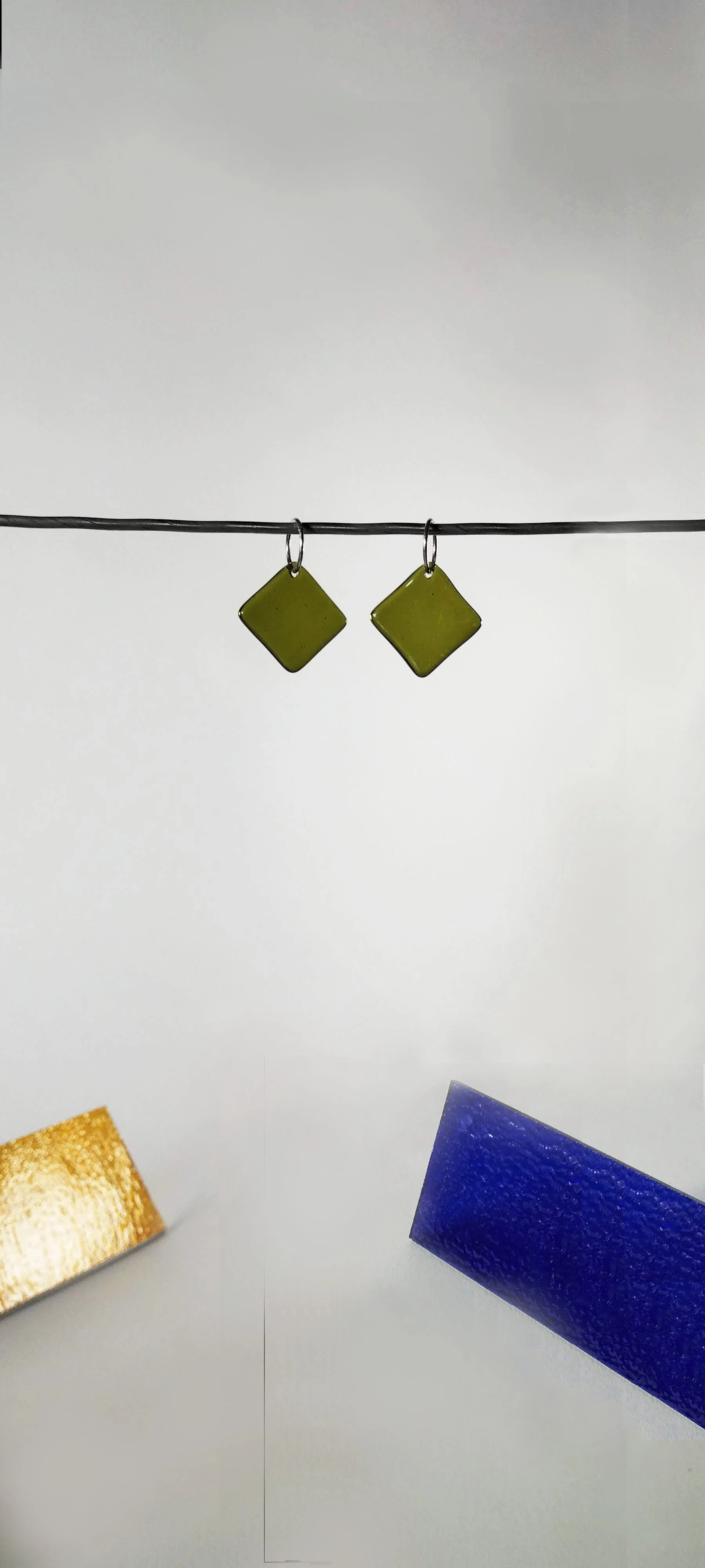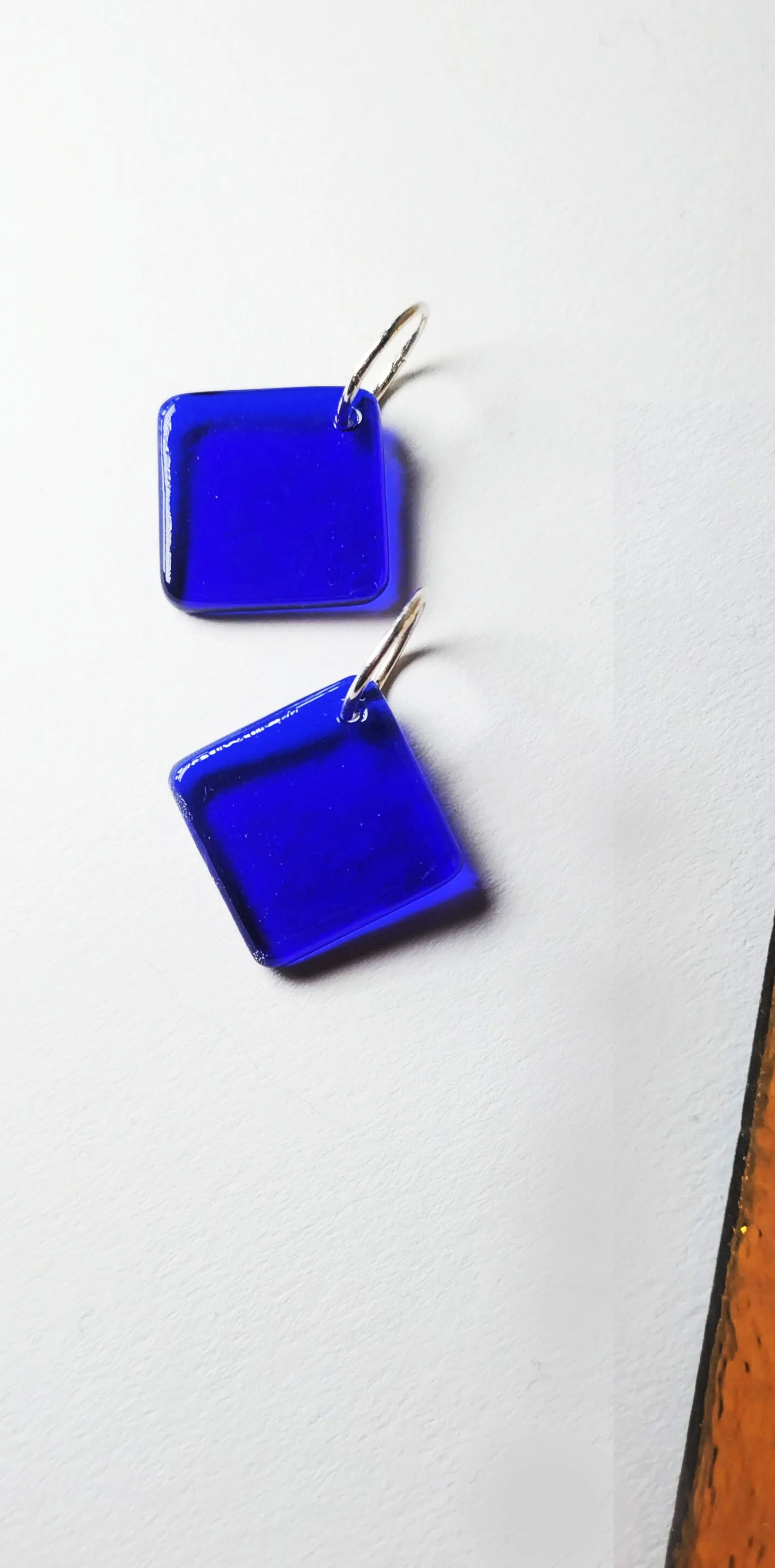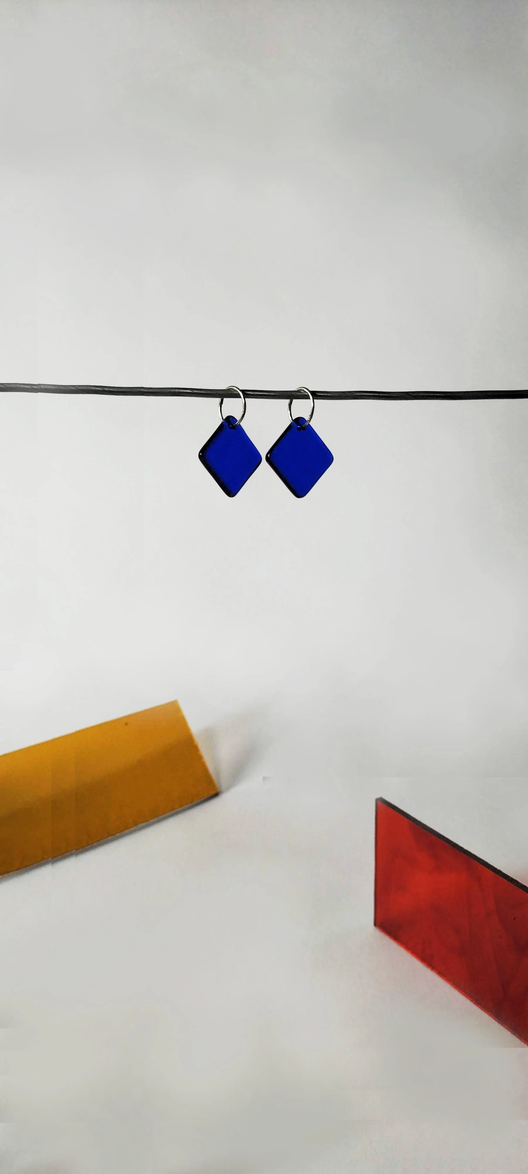 Diamond shaped glass earrings on simple sleeper rings are easy to wear at the office, beach or dance floor.